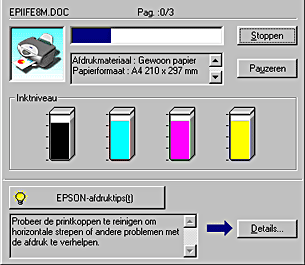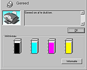 Het venster met de voortgangsbalk verschijnt automatisch wanneer u een afdrukopdracht naar het apparaat stuurt. In dit venster kunt u zien hoeveel inkt er nog beschikbaar is.
