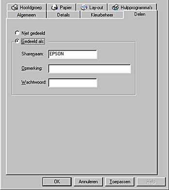 Schakel het selectievakje Ik wil anderen toegang kunnen geven tot mijn printer(s) (I want to be able to allow others to print to my printer(s)) in en klik op OK.