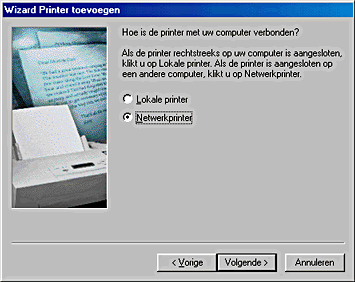 Selecteer Netwerkprinter (Network printer) en klik op Volgende (Next).