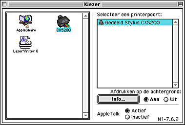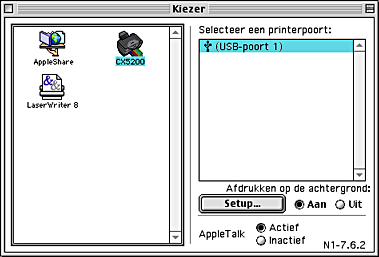Kies in het Apple-menu de Kiezer (Chooser) en klik op het pictogram van het apparaat. Selecteer vervolgens de poort waarop het apparaat is aangesloten.