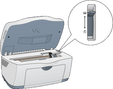 Zet de instelhendel voor speciaal afdrukmateriaal op