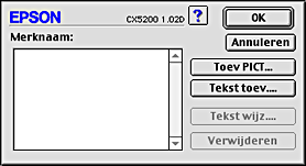 ![]() | Om een beeldbestand als watermerk te gebruiken, klikt u op de knop Toev PICT. Geef het gewenste beeldbestand op en klik op Open. |