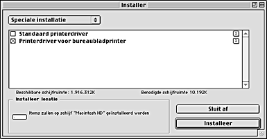 Kies in de Installer de optie Speciale installatie (Custom Install) en schakel het selectievakje Printerdriver voor bureaubladprinter in.