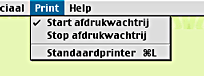 Via het menu Print kunt u het afdrukken stoppen en hervatten, en de standaardprinter instellen.