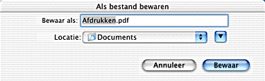 ![]() | Selecteer de locatie waar u het bestand wilt opslaan en typ een bestandsnaam in het tekstvak Bewaar als (Save As) en klik op de knop Bewaar (Save). |