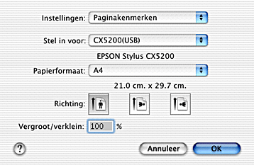 Selecteer het papierformaat dat u wilt gebruiken. |