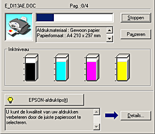 U kunt het afdrukken annuleren met behulp van de voortgangsbalk of de EPSON Spool Manager. Raadpleeg het betreffende gedeelte hierna.
