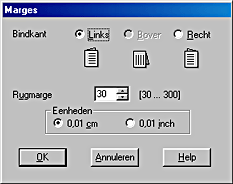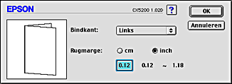 De werkelijke rugmarge kan afwijken van de opgegeven instellingen. Dit hangt af van de toepassing waarmee u werkt. Probeer daarom eerst een paar vellen uit om te zien wat het resultaat zal zijn, voordat u de volledige afdruktaak uitvoert.