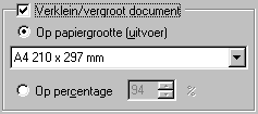 Voor Windows: schakel het selectievakje Verklein/vergroot document in en selecteer Op papiergrootte (uitvoer) op het tabblad Paginalay-out.
