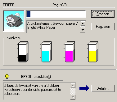 U kunt het afdrukken annuleren met behulp van de voortgangsbalk of de EPSON Spool Manager. Raadpleeg het betreffende gedeelte hierna.