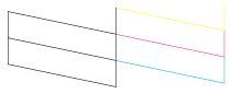 Als de kwaliteit niet goed is, is er iets mis met het apparaat. Als er bijvoorbeeld strepen in het controlepatroon zitten (zie afbeelding), is er wellicht sprake van een verstopt spuitkanaaltje of een onjuist uitgelijnde printkop. Zie De printkop reinigen voor meer informatie over het reinigen van de printkop.