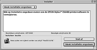![]() | Selecteer Maak installatie ongedaan (Uninstall) in het menu linksboven in het scherm en klik op Maak installatie ongedaan (Uninstall). |