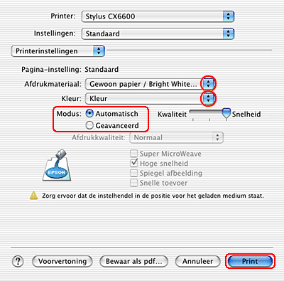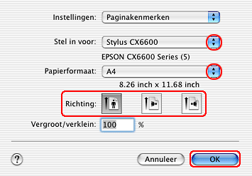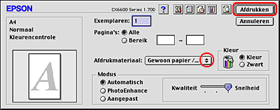 De instellingen voor Aantal en pagina's zijn de standaardinstellingen van Mac OS X. Raadpleeg de documentatie bij uw besturingssysteem voor meer informatie.