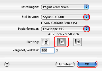 Selecteer het gewenste envelopformaat uit de instellingen bij Papierformaat.