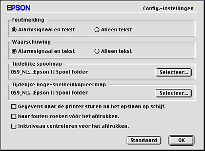 Geef aan op welke manier EPSON StatusMonitor u moet waarschuwen wanneer er zich een fout voordoet. |