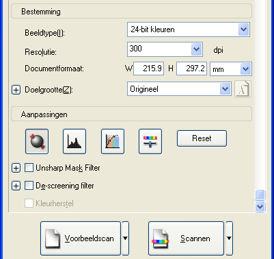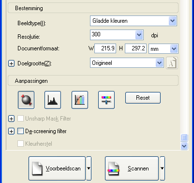 ![]() | Klik op de knop Voorbeeldscan om de afbeeldingen te bekijken. |