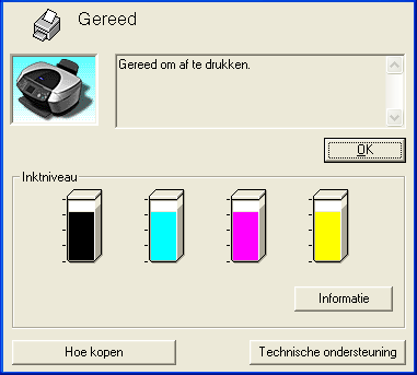 Er verschijnt een grafische weergave van de hoeveelheid resterende inkt.