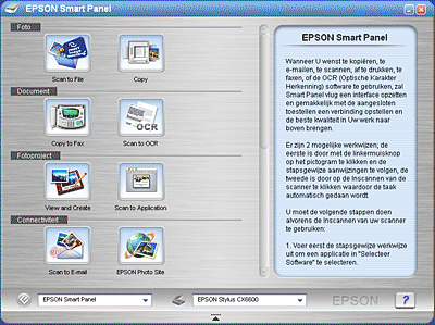 Klik op het vraagteken in de rechterbenedenhoek van het venster als u hulp nodig hebt bij het gebruik van EPSON Smart Panel.
