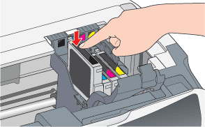 Als de klep van de printkop niet sluit of de printkop zich niet naar de uitgangspositie verplaatst, opent u de klep van de printkop en klikt u de cartridges op hun plaats.