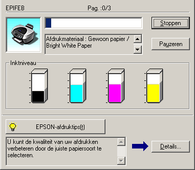 U kunt het afdrukken annuleren met behulp van de voortgangsbalk of de EPSON Spool Manager. Raadpleeg het betreffende gedeelte hierna.