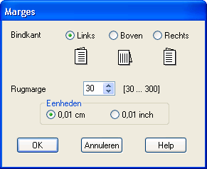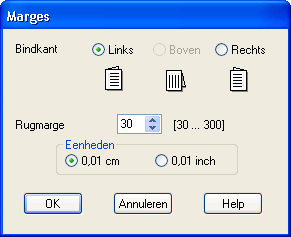Geef de rand aan waar het papier wordt gebonden. U kunt kiezen uit Links, Boven en Rechts.