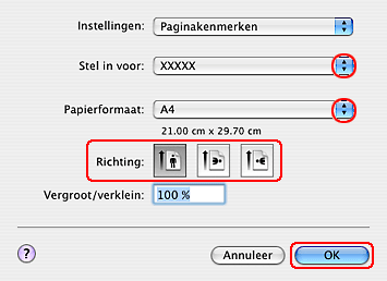 Geef de gewenste instellingen op bij Papierformaat en Afdrukstand.