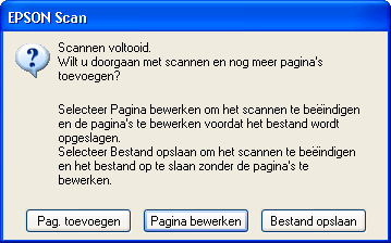 Wanneer u verschillende pagina's wilt scannen, klikt u op Pag. toevoegen, legt u nieuwe documenten op de glasplaat of op de automatische documenttoevoer en klikt u op Scannen. Herhaal deze stap indien nodig. Wanneer u klaar bent, klikt u op Pagina bewerken en gaat u verder bij stap 10.