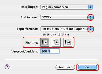 Selecteer XXX (Papiertoevoer - Randloos) als u randloze foto's wilt afdrukken.