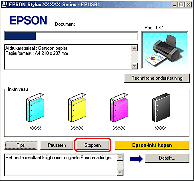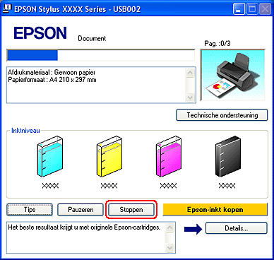 Klik op de knop Stoppen om het afdrukken te annuleren.