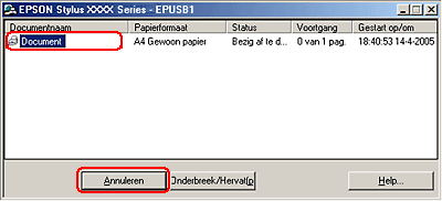 U kunt het afdrukken annuleren met behulp van de voortgangsbalk of de EPSON Spool Manager. Zie het betreffende gedeelte hierna.