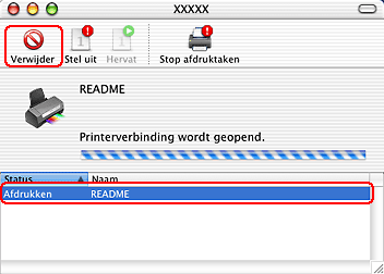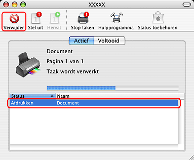 Als u een afdruktaak wilt annuleren, selecteert u de afdruktaak in de lijst en klikt u op Annuleren.