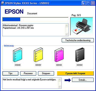 De kwaliteit of betrouwbaarheid van niet-originele inkt kan niet door Epson worden gegarandeerd. Als niet-originele cartridges zijn geïnstalleerd, wordt de cartridgestatus niet weergegeven.