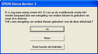 Klik op Deze functie uitschakelen om de resterende zwarte inkt te gebruiken. Het venster wordt niet meer weergegeven tot u de zwarte cartridge vervangt.