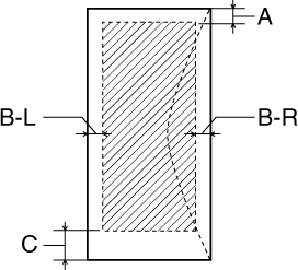 Diagonale lijnen geven het afdrukgebied aan.