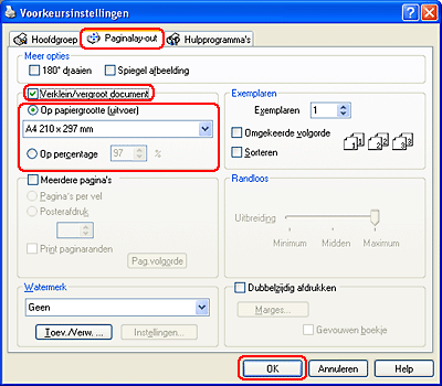 Klik op OK om het venster met printerinstellingen te sluiten.