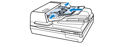 Leg de eerste pagina van het document in de invoerlade met de bedrukte zijde naar boven en de bovenrand naar de invoerspleet van de ADF gericht. Schuif het papier in de invoerspleet tot u weerstand voelt. Schuif nu de zijgeleiders tegen het papier aan.