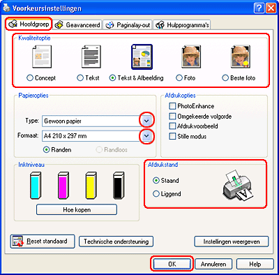 Klik op OK om het venster met printerinstellingen te sluiten.