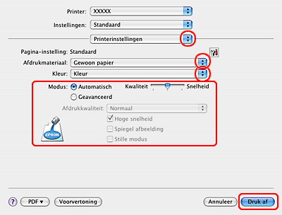 De printerdriver voor Mac OS X gebruiken
