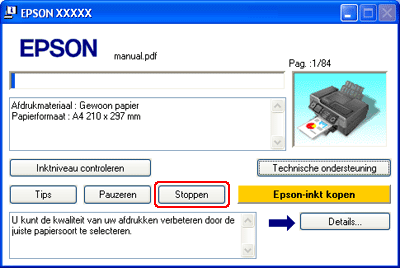 Klik op de knop Stoppen om het afdrukken te annuleren.
