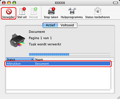 Als u een afdruktaak wilt annuleren, selecteert u de afdruktaak in de lijst en klikt u op Annuleren.