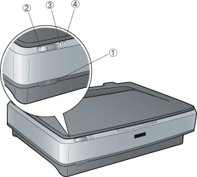De scanner bevat twee indicatielampjes en twee knoppen.