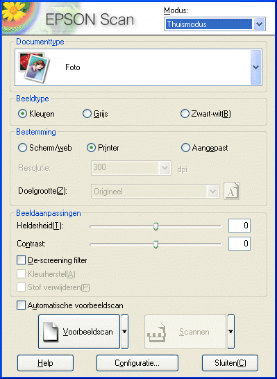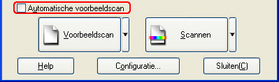 Als het selectievakje Automatische voorbeeldscan is ingeschakeld, wordt de voorbeeldscan automatisch gestart zodra u de thuismodus selecteert. De voorbeeldscan wordt niet automatisch weergegeven, wanneer dit selectievakje niet is ingeschakeld.
