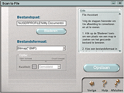 Met deze toepassing kunt u afbeeldingen scannen, omzetten en vervolgens opslaan in een specifieke map. Wanneer u deze toepassing start, wordt een afbeelding gescand met behulp van EPSON TWAIN en weergegeven in het dialoogvenster Verify Assistant. Klik op Finish en het volgende dialoogvenster wordt weergegeven. Raadpleeg de documentatie bij EPSON Smart Panel voor meer informatie.