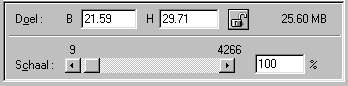 Het percentage vergroting of verkleining wordt getoond in het veld naast de schuifbalk Schaal. U kunt rechtstreeks een andere waarde invoeren in dit veld, maar u kunt de waarde ook bepalen met behulp van de schuifbalk.