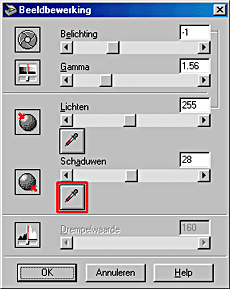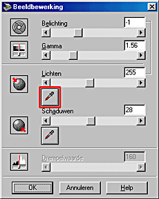 Klik in het dialoogvenster Beeldbewerking op de oogdruppelaarknop onder Lichten.