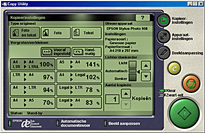 Met deze toepassing verandert u uw scanner in een digitaal kopieerapparaat. De toepassing lijkt op een echt kopieerapparaat, maar de functies ervan zijn een stuk krachtiger en flexibeler dan die van een traditioneel apparaat. Raadpleeg de documentatie bij EPSON Smart Panel voor meer informatie.