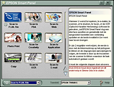 ![]() | Selecteer een toepassing in de keuzelijst EPSON Smart Panel. |