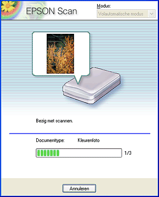 Wanneer u in dit venster op Annuleren klikt, wordt EPSON Scan afgesloten.