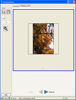 Met een normale voorbeeldscan ziet u het volledige voorbeeld en het resultaat van de instellingen die u hebt vastgelegd. Desgewenst kunt u de instellingen dan aanpassen. Met het selectiekader kunt u precies de gewenste gedeelten van de afbeelding scannen. Zie Een selectiekader gebruiken voor meer informatie over selectiekaders.
