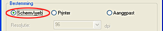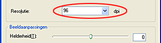 Wanneer u de gescande afbeeldingen wilt weergeven op een computerscherm, zet u de outputresolutie op 96 dpi. Een monitor kan niet hoger dan 96 dpi. Scannen op hogere resoluties heeft alleen maar nadelige gevolgen. Bestanden met een lage resolutie zijn kleiner en gemakkelijker te verwerken. Gebruik daarom een lage resolutie voor afbeeldingen die u wilt gebruiken op het Internet of die u wilt verzenden per e-mail.